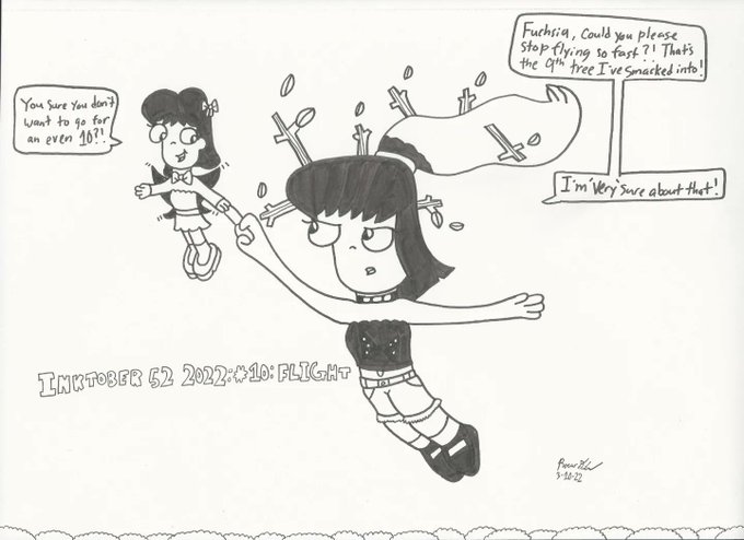 This week's #inktober52 #comic stars Fuchsia and Celeste as they take: Flight. #inktober52flight #Inktober522022 #inktober2022 #inktober #art #artwork #drawings #artoftheday #penandinkdrawing #minchopigmentliner #themagicalandadventure