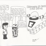 A long, long time ago in an #inktober52 not far away, we find a new #comic with Russell and Frankie as they live long and prosper with the theme of: Sci-Fi. #inktober52scifi #Inktober522022 #inktober2022 #inktober #penandinkdrawing #minchopigmentliner #thesecretbeauty