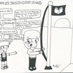 The first July #comic of this year's #inktober52 has Melanie and her Mom comment on the Michaigan State Library's: Flag. #inktober52flag #inktober522022 #inktober2022 #Inktober #art #artwork #drawings #artoftheday #penandinkdrawing #minchopigmentliner #thesecretbeauty
