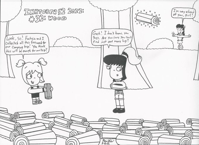 We head back to Magicaland for this #Inktober52 #comic, in which Fuchsia and Bella gather up plenty of Fire: Wood! #inktober52wood #inktober522022 #inktober2022 #Inktober #art #artwork #drawings #artoftheday #penandinkdrawing #minchopigmentliner #themagicalandadventure