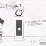 The last #Inktober52 #comic for September, stars Wilma and Carl. Carl climbs up onto Wilma's grandfather clock way past his bed: Time. #inktober52time #inktober522022 #inktober2022 #Inktober #art #artwork #drawings #artoftheday #penandinkdrawing #minchopigmentliner #wilmaandcarl