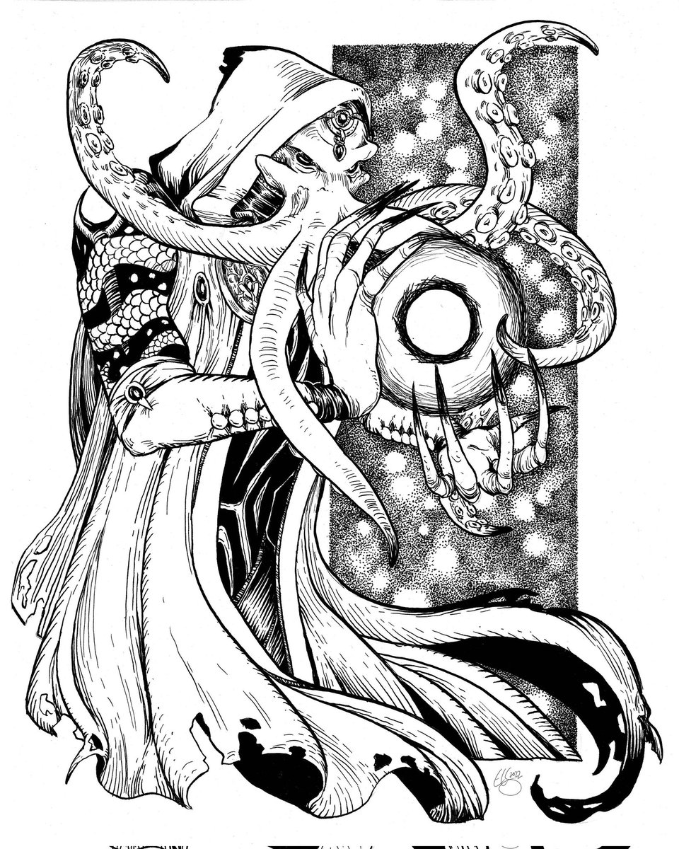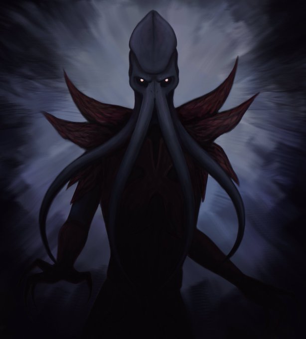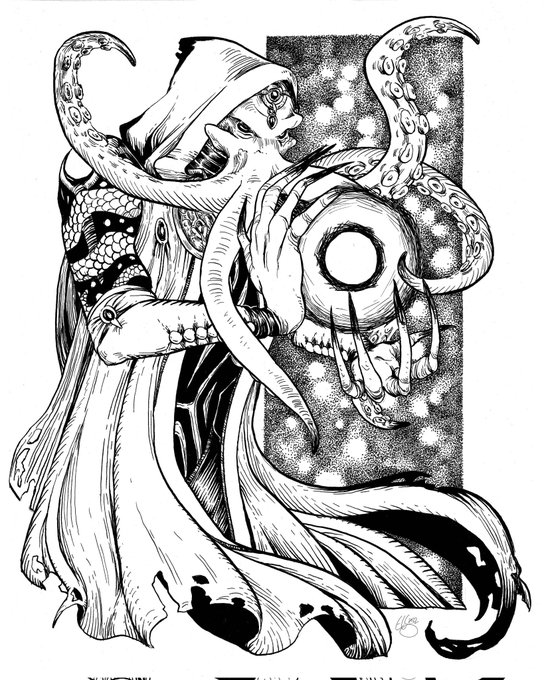 Complete line art for this cthulhian emissary. Colors incoming - I had to add the green eyes before sharing. 👀 #Cthulhu #greatoldone #mindflayer #OCart #commissionsopen #ArtistOnTwitter