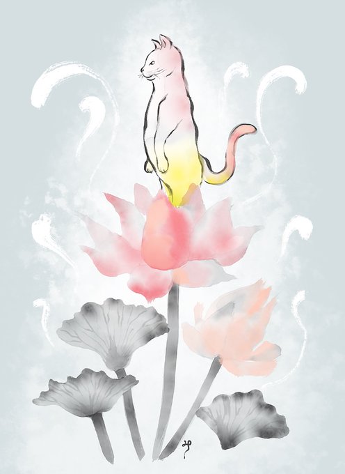高いところだとよく見えるね☁️✨Better view as you go higher #illustration #cat #drawing #painting #mindfulness #イラスト #絵描きさんと繋がりたい