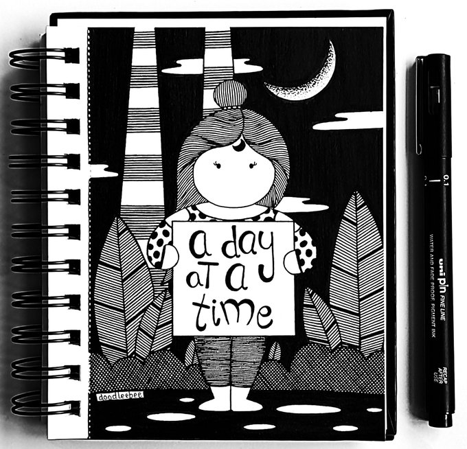 This has been of my most favourite mantras to follow & imbibe. When things get too difficult, overwhelming, dark or you start wondering how you'll get through it - take it one day at a time. Baby steps. Breathe. #Doodleebee #selfcare #mindfulness #doodle #art #Mentalhealth #myart