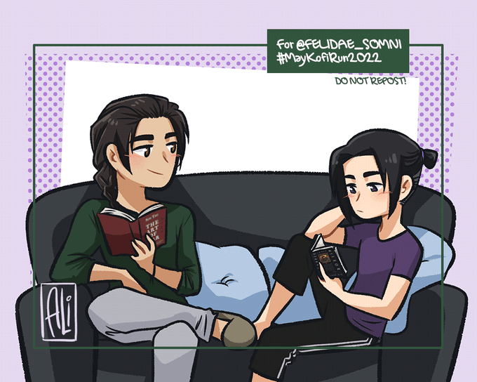 ☕️ #OctoberKofiRun21 Day 03 for @felidae_somni nmj: hey 😎😎😎 jc: h...hey 😳😳😳 💚💜 #mingcheng #mdzs