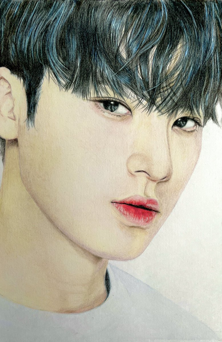 ミンギュ🐶 髪の毛頑張った🙋♀️ #mingyu #mingyufanart #ミンギュ #seventeen #seventeenfanart #色鉛筆画 #アナログイラスト #お絵描き好きな人と繋がりたい #민규