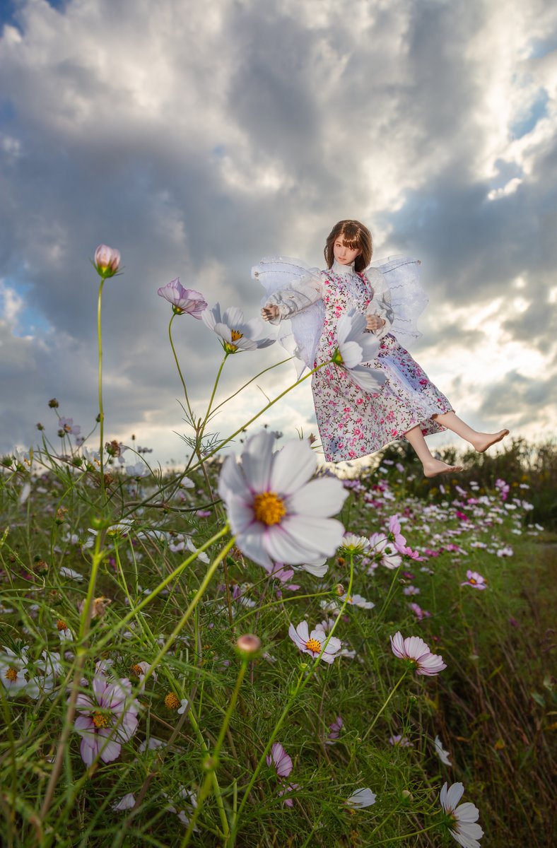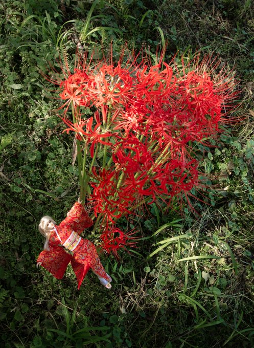 この花の精の様に空を見上げることが出来たなら、きっと真昼の空を埋めつくす真っ赤な花火を見たことだろう。 #オモ写 #妖精 #彼岸花 #ポートレート #ミニチュア #miniaturedoll #realfigure #portrait