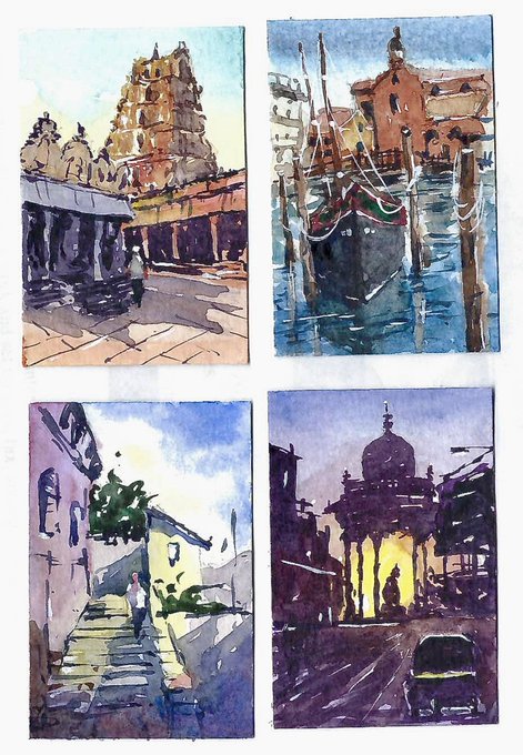 Mini (credit card size) watercolor paintings. Painted quickly to sketch out ideas for bigger projects. Love how they turned out ❤️ #watercolor #watercolorpainting #watercolorart #art #minipainting #womenartists