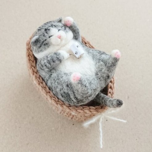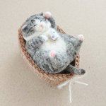 身だしなみは自分で整えます🎵 サバトラ白猫さんの羊毛フェルトブローチです。 お気に入りのベッドでコロコロコロ~ 気持ちよさそうにくつろいでます♪ ❄️作品ページ minne.com/items/30547003 @minnecom #猫 #羊毛フェルト #ハンドメイド #猫好きさんと繋がりたい #minneクリスマス