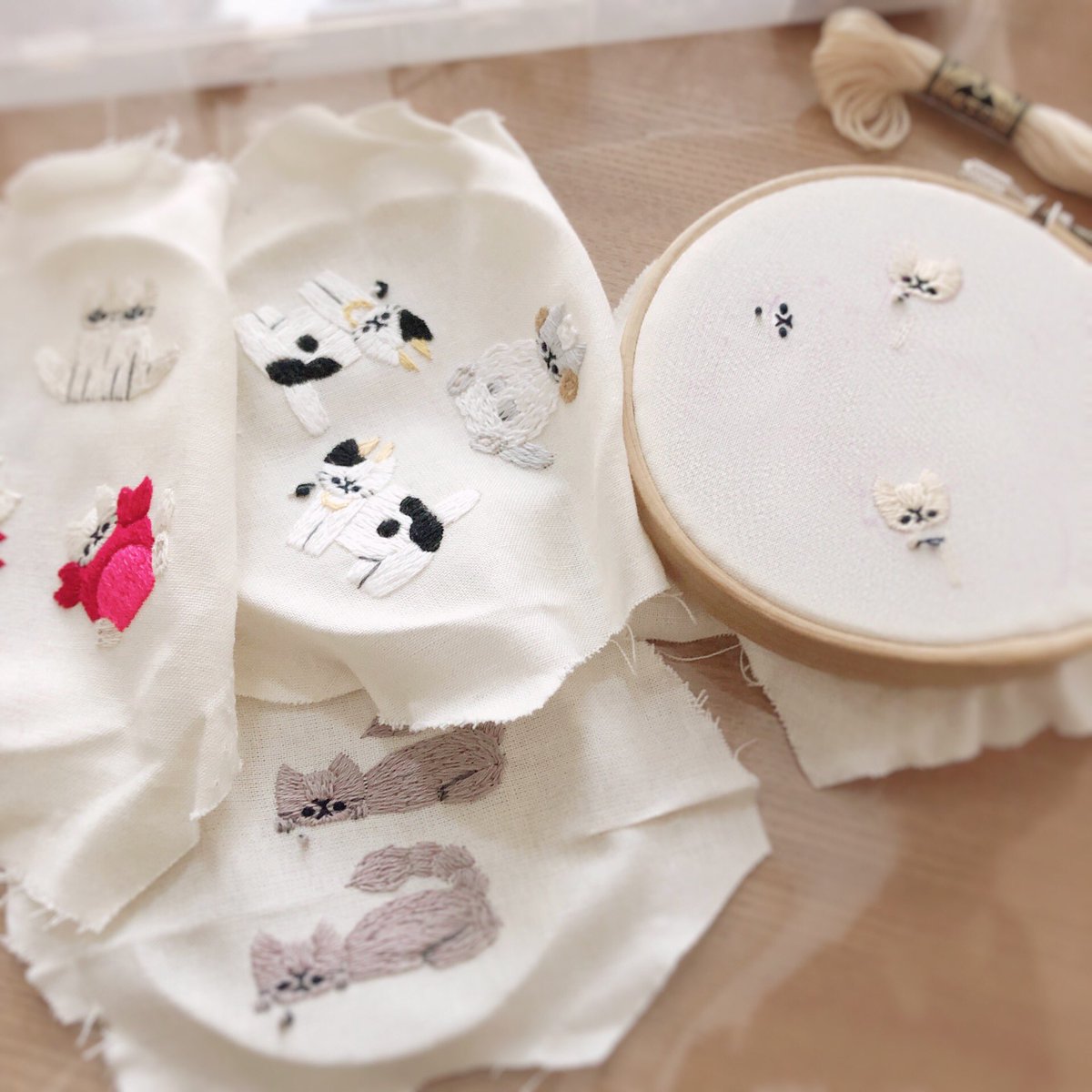 ねこができるまで🐱🪡🧵 原案を考えて下絵を描いて 布に写して刺繍をして 切って裏地とブローチピンをつけて 12星座の猫のブローチ完成! 一つ一つの工程が大切です💫 #minne10周年 @minnecom