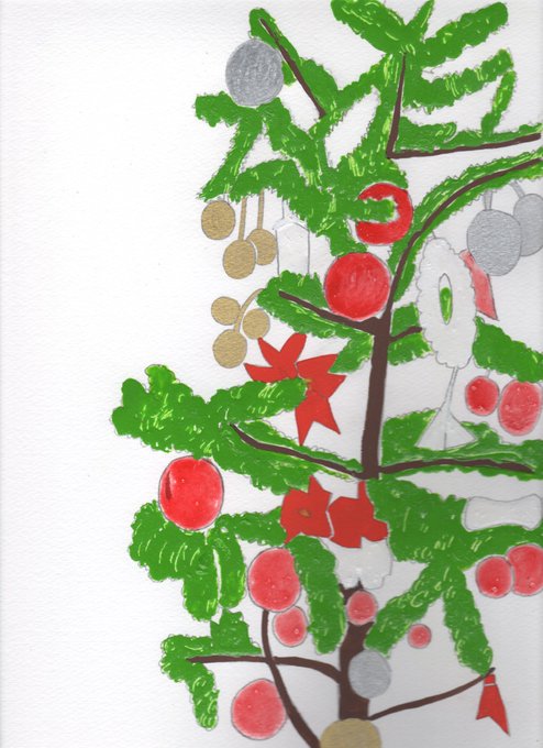 手作りのクリスマスツリー。 2022/12/15 #クリスマス #クリスマスツリー #手作り #蓑島えみ #emiminoshima #minoshimaemi #イラスト #イラストレーター #illustration #drawing #painting #絵