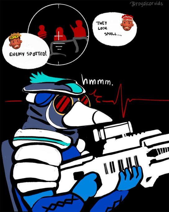 me: scoped in, hyper focused, with wretched impulse control me poor teammates: WHY ARE YOU STILL THERE #miragehound #apexlegends #apexlegendsfanart twitter.com/royalcorvids/s…