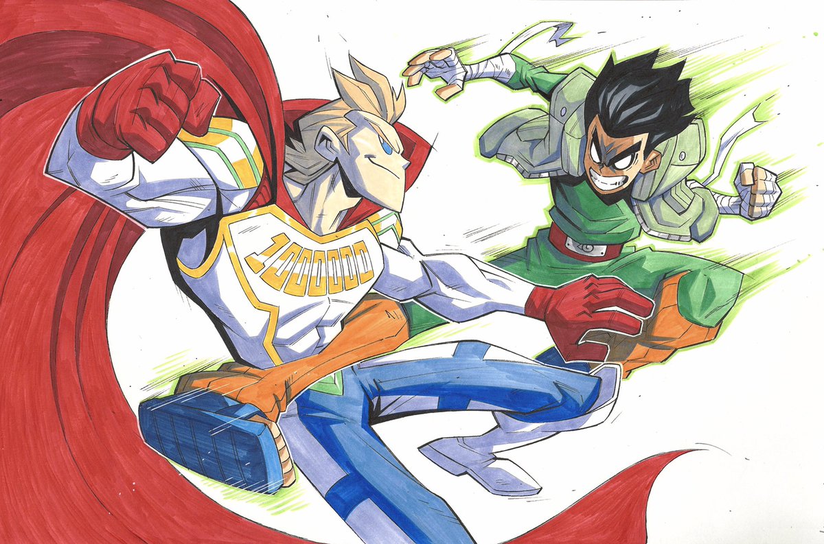 Rock Lee 🆚 Lemillion 11x17, ink and marker commission. #rocklee #miriotogata #naruto #MyHeroAcadamia