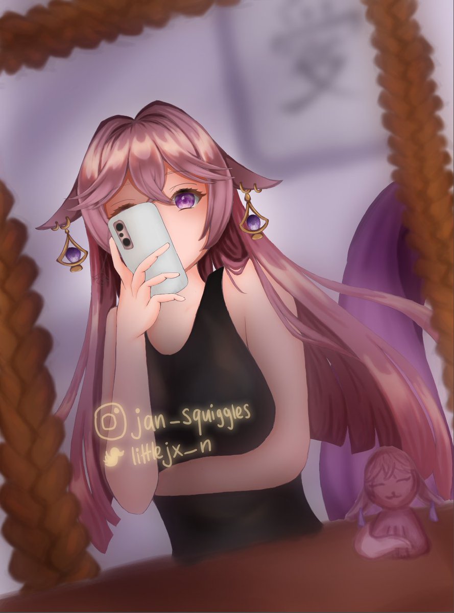 Yae Miko mirror selfie <3 - - - #原神 #八重神子 #genshinimpactfanart #Genshin #mirrorselfie #illustration #FANART
