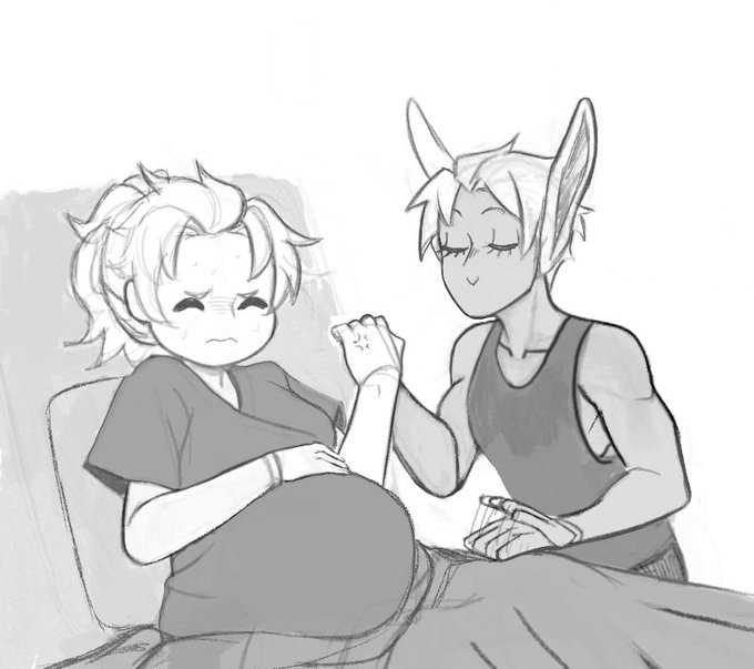 A lil wip from a lil a/b/o chubbybunny comic im werkin on! Alpha miruko really out here trying to fascinate omega fatgum with a bagel for eating as is the style #mirugum #chubbybunny #miruko #mirko #rumiusagiyama #fatgum #taishirotoyomitsu #mha #bnha