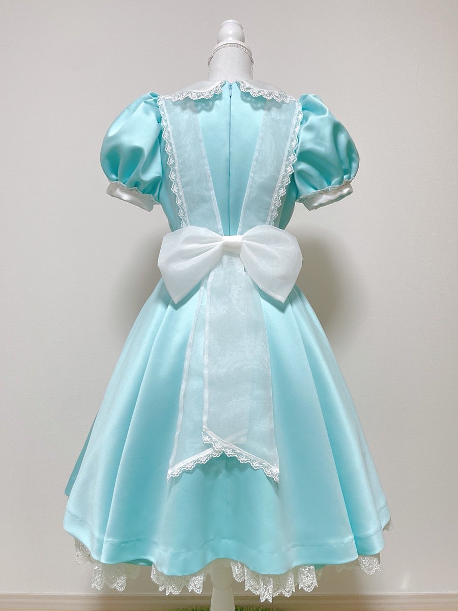 【衣装製作】Disney 🌹ふしぎの国のアリス🌹 (ミッキーのマジカルミュージックワールドver) 透け感のあるエプロンがお気に入り! 本家のように、主張したタイプじゃなくて動いたらキラッとする程度に 裾、襟のレース部分にストーンやスパンコールを沢山手縫いしてあるよ✨ #misa衣装製作日記