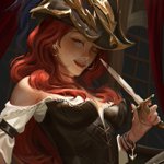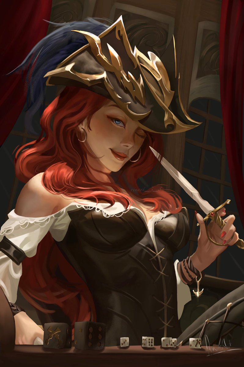 “Liar’s Dice” “Better think twice before you call someone a liar, Sailor.” Captain Sarah Fortune drawled as she reclined.” Ref/inspo @/Hou China (Art Station) & @Qimang2 • #leagueoflegends #missfortune #leagueoflegendsfanart #missfortunefanart #semirealism #illustration