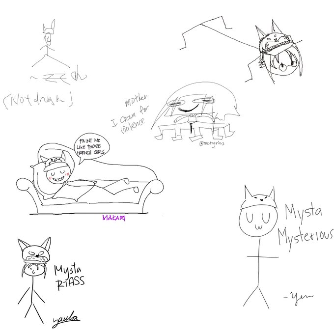 Compilation of my arts during the Pisstakecord drawing event! (I’m sorry IDK how to put them into one pic) 【1/4】 #MystArt #MissingMysta #WeMissta