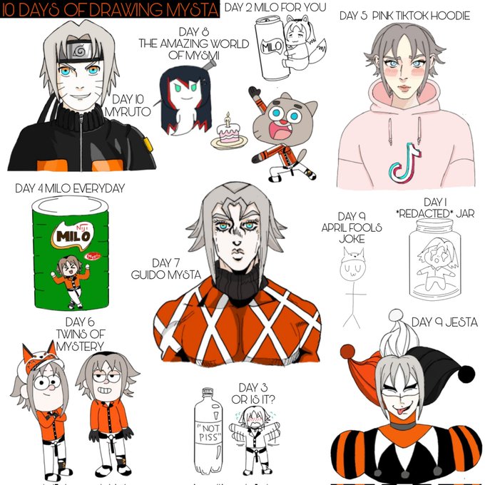 We missed so much Mysta!!! Welcome back 🧡🧡🧡 Here’s a compilation of drawing that i made from our pisstake cord event. (Its my first time drawing fanarts day by day, i never knew collabing with other is fun 🧡 love ya guys) #MystArt #MissingMysta #WeMissta