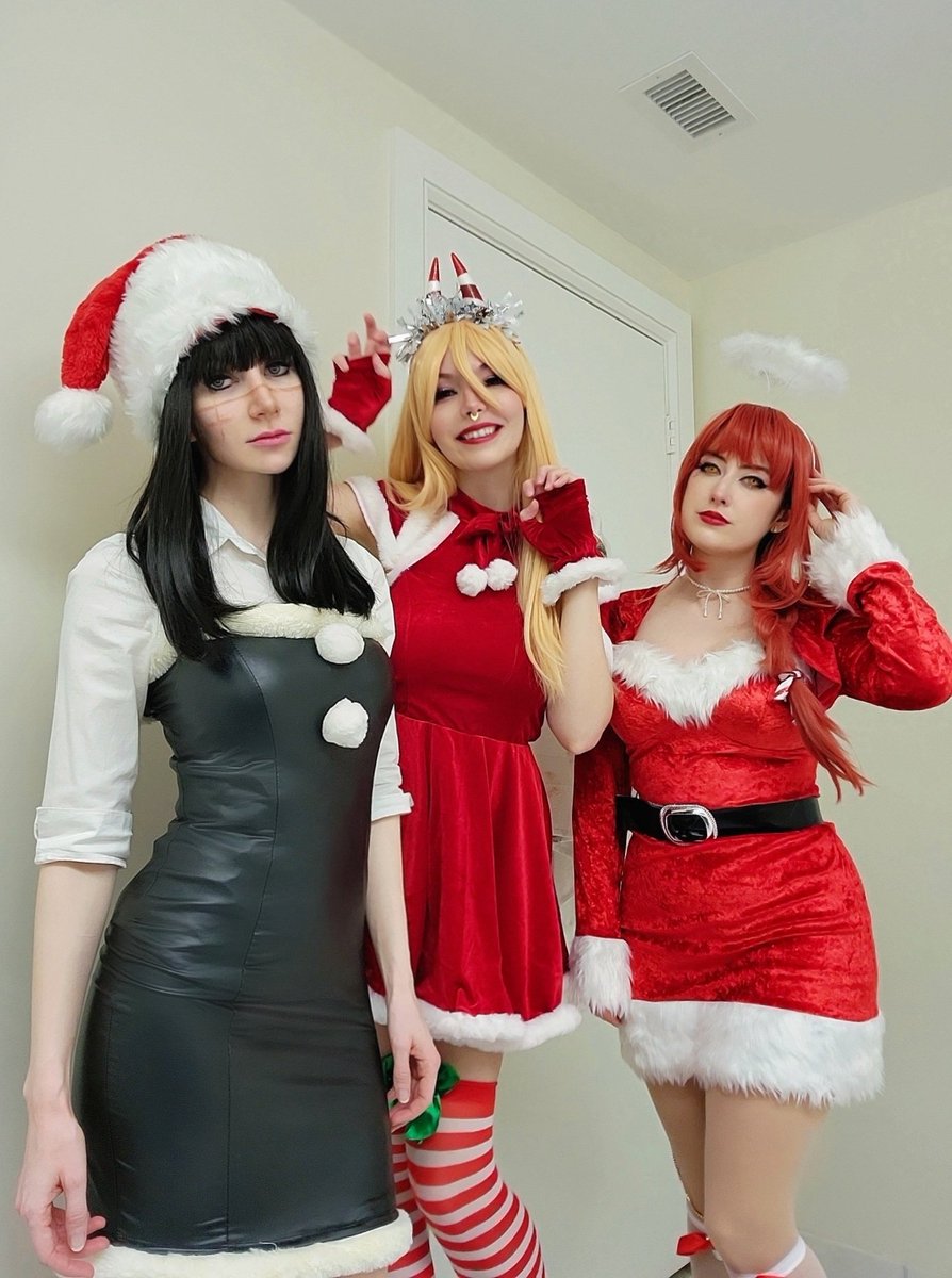 Chainsaw Man Christmas outfits at @HolidayMatsuri Mitaka: @Lishooo Power: @sailorfrogz Makima: @LeahLux_ #chainsawman #chainsawmancosplay #holmat #holidaymatsuri #HolMat2022 #christmascosplay #mitaka #power #makima