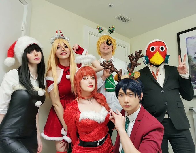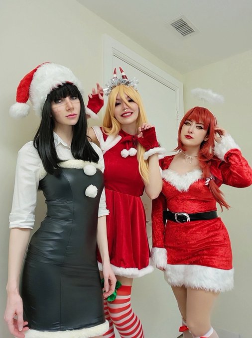 Chainsaw Man Christmas outfits at @HolidayMatsuri Mitaka: @Lishooo Power: @sailorfrogz Makima: @LeahLux_ (The guys don't have Twitter accounts) #chainsawman #chainsawmancosplay #holmat #holidaymatsuri #HolMat2022 #christmascosplay #mitaka #power #makima