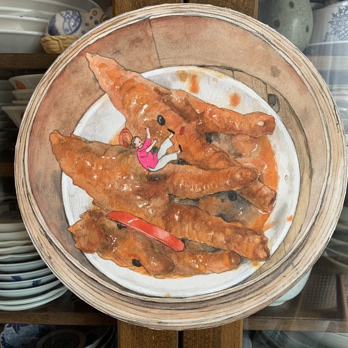 お好きですか?鳳爪(鶏の足) #我好鐘意鳳爪 #illustration #watercolor #mitsukoonodera #飲茶 #イラスト #水彩画 #透明水彩 #香港 #ilovehongkong