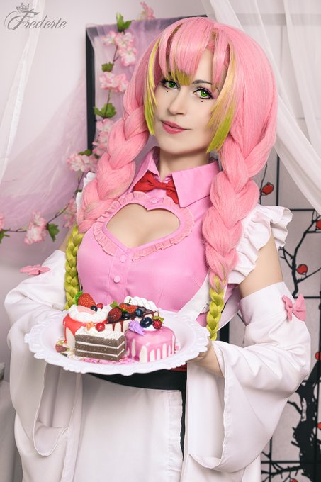 🌸 It’s maid time! 🌸 "𝘋𝘰 𝘺𝘰𝘶 𝘸𝘢𝘯𝘵 𝘴𝘰𝘮𝘦 𝘤𝘢𝘬𝘦?" ...hope you guys like this cosplay as much as I do! ☕️ ko-fi.com/frederie —— #mitsuricosplay #mitsurimaid #knycosplay #demonslayercosplay #maidcosplay #demonslayer #kny #mitsuri #frederiecosplay #lovepillar