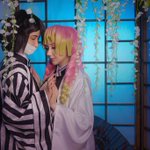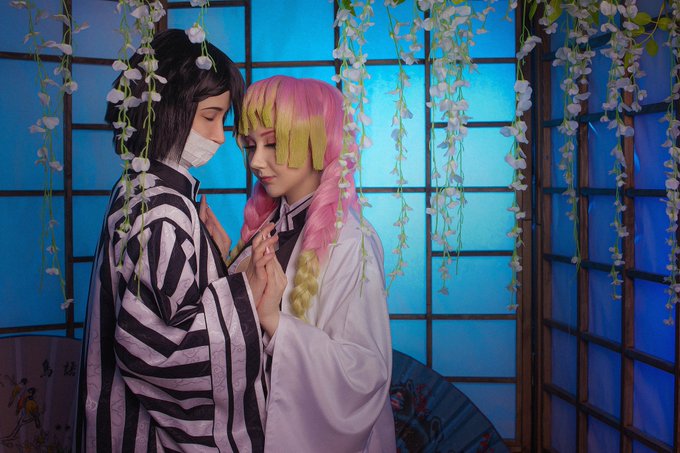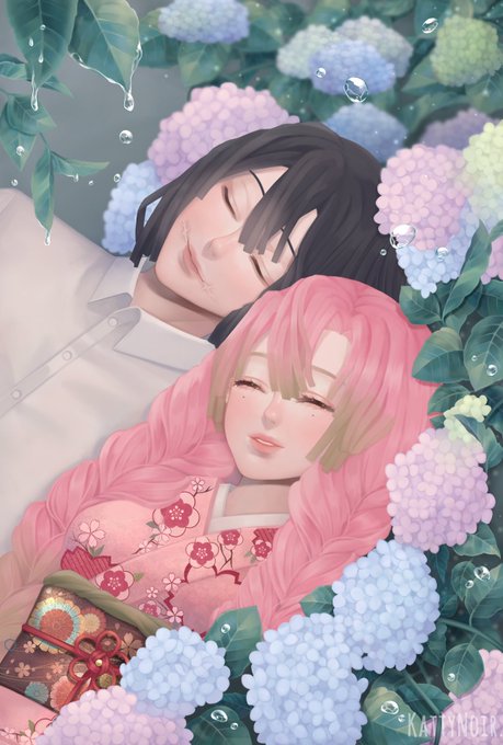 I set one of my favourite paintings as my Twitter cover. #ObaMitsu #kimetsunoyaibafanart #Kimetsunoyaiba #KNY #Mitsuri #Obanai #MitsurixObanai