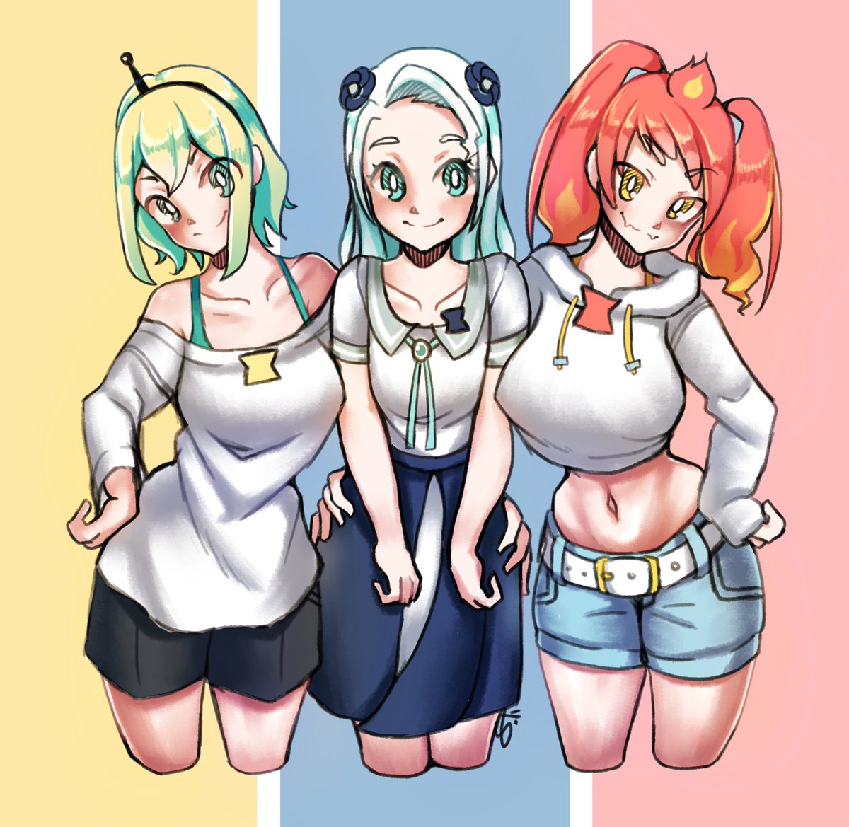 I felt like drawing the voms cuties again so I could test some brushes (sorry Ryugon) #VOMS_project #Pikamee #Tomoshika #Miuneru #Pikart #トモシ画 #はね絵図