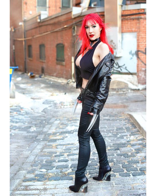 "Hey - you wanna play #Wolverine one more time..?" 🖤 #MaryJaneWatson 💋 #X23 #Deadpool #MJandSpidey #MaryJane #MJ #XMen #SpiderMan #SpiderVerse #Avengers #Marvel #Comics #MCU #Cosplay #Photography #Model #Heels #SciFi #RyanReynolds #HughJackman #Gaming #Redhead #ComicCon #NYCC