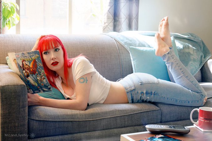 Start your day with something classic... 💋☀️☕ #MaryJaneWatson #SpiderMan 🕸️ #GoodMorning #MJandSpidey #MaryJane #MJ #PeterParker #JScottCampbell #SpiderVerse #Marvel #MCU #Comics #Cosplayer #Cosplay #Redhead #PinupGirl #Gamer #Gaming #Heels #Barefootgirl #Model #Photography