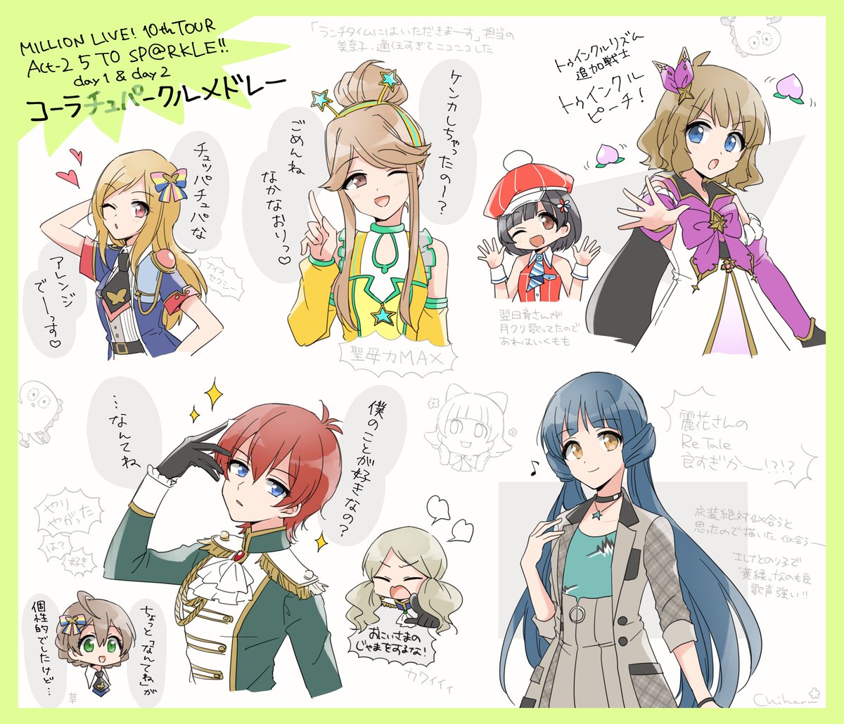 ソロもユニットも全体曲もすべてよかったけどすべては描けないので取り急ぎコーラチュパークルの好きなとこ詰めた🫶 ジュリア 朋花 桃子 麗花 莉緒 育 ロコ 歌織 #ml_10th_act2_day1 #ml_10th_act2_day2