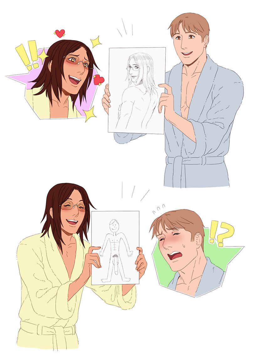 Redrawing the scene when he showed the picture he drew 😬 #mobuhan Titanic AU because idk #watercolor Fun fact: masking tape on the edge of the drawing has been there for 3 months and it didn't break the paper twitter.com/stay_putiful/s…