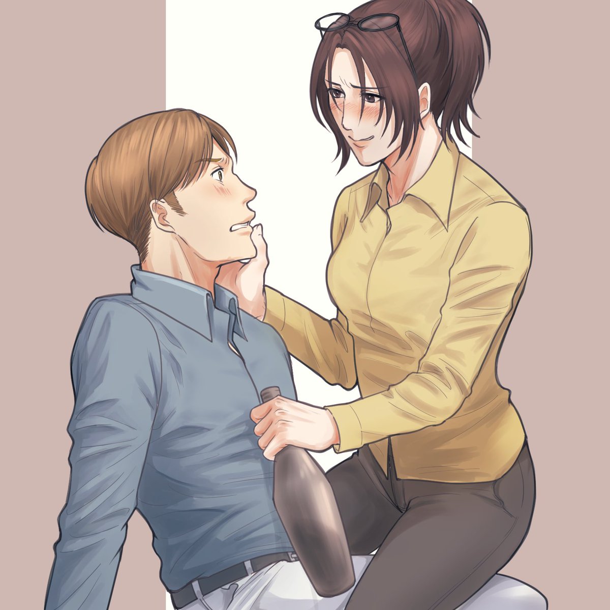 вот она, щука моей мечты #AttackOnTitan #進撃の巨人 #SNKfanart #aotfanart #HangeZoe #ハンジ・ゾエ #MoblitBerner #モブリット・バーナー #Hange #Hanji #Moblit #MobuHan #モブハン