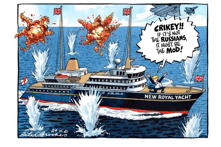 My cartoon @TheTimes Thursday. The #MoD reluctant to cough up for a #NewRoyalYacht…..#HMSDefender #Crimea