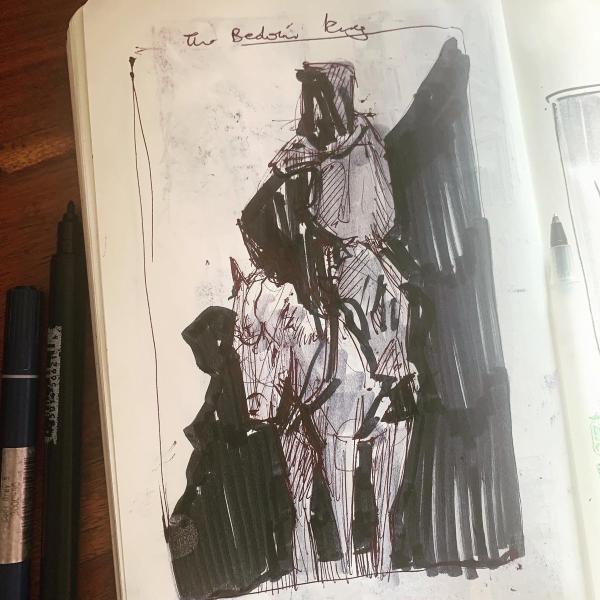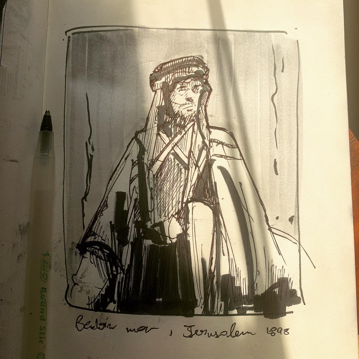 22/31 Bedouin mans. My Traditional toolkit -Moleskine Classic notebook -Uniball fine deluxe -Bic round stic -Tombow dual brushpen -Staedtler mars graphic duo #inktober #inktober2021 #moleskinesketchbook #artoftheday #inksketch #penandink #brushpen #calofart #artistsoftwitter