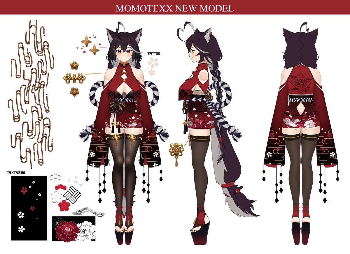 NEW MOMOTEXX CHARACTER SHEET! I was able to create my new model and had the great opportunity of working with my big sister, @huffiestrikes who did an amazing job with the rigging! ❤️ #momarties