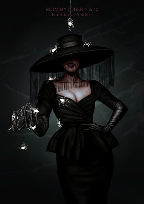 Mommytober 7 & 10: Familiars + Spiders she's a fierce spider-whisperer who probably made the spiders eat all her ex husbands 🫣🕸️🕷️ #mommytober #mommytober2022 #drawtober