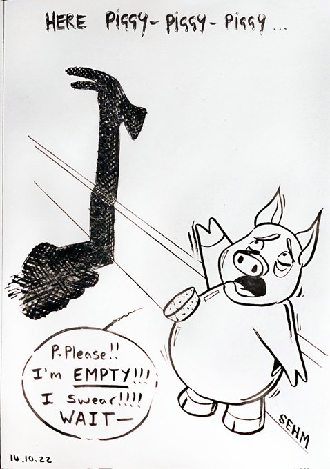 Day 14: EMPTY. Brush pen on paper. *No piggy banks were harmed during the making of this drawing. #Inktober #inktober2022 #inktober2022day14 #inktober2022day14empty #empty #inktoberday14 #piggybank #money #poor