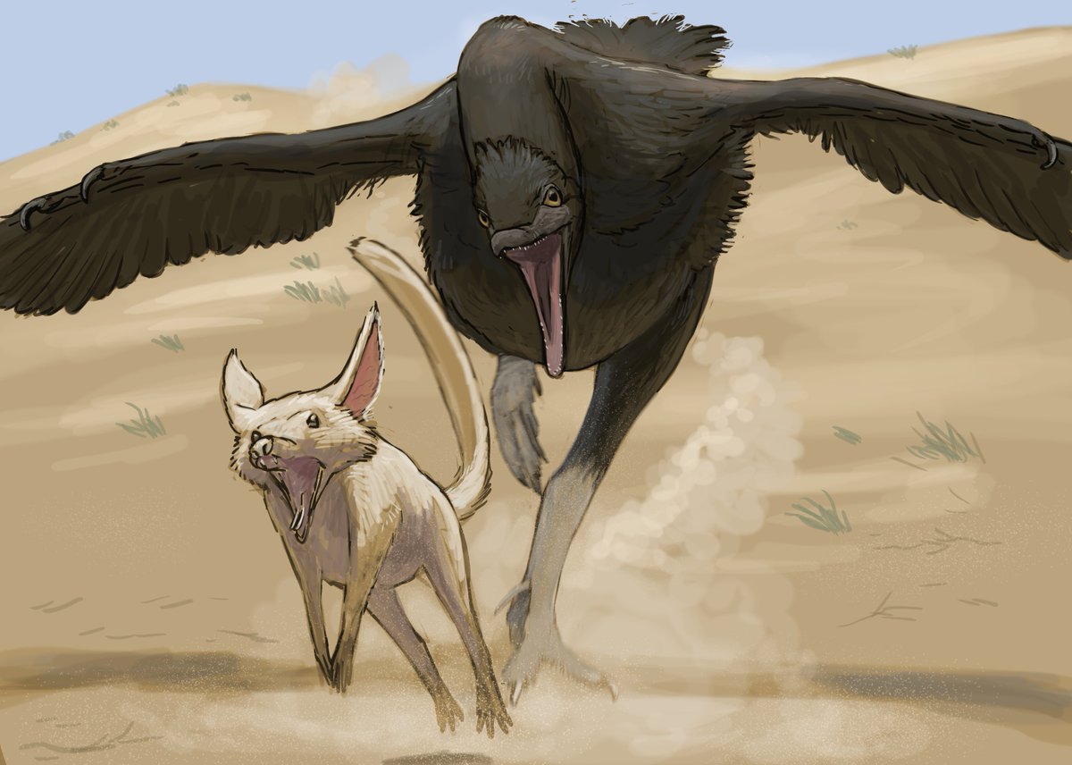 For #inktober2022 prompt 9: ‘Nest’, we have an Oviraptor protecting her eggs from a Shuvuuia. #drawing #inktober #inktobernest #nest #dinosaur #desert #mongolia #nemegtformation #cretaceous #oviraptor #nest #sanddunes #shuvuuia #protoceratops #feathereddinosaur #illustration
