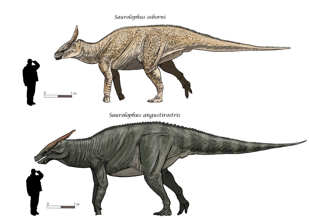 #Saurolophus has been discovered in the Horseshoe Canyon (#Canada) and Nemegt (#Mongolia) Fossil Formations dating to ~70my old. This animal provides strong evidence that #dinosaurs were able to actively move between Asia and NA around this time. (#PaleoArt by @rexorasaurus)