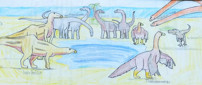 A Water truce for everybody I draw this Inspiration of prehistoric Planet Also the species as pair or one with it. #PrehistoricPlanet #Dinosaurs #Mongolia #paleoart