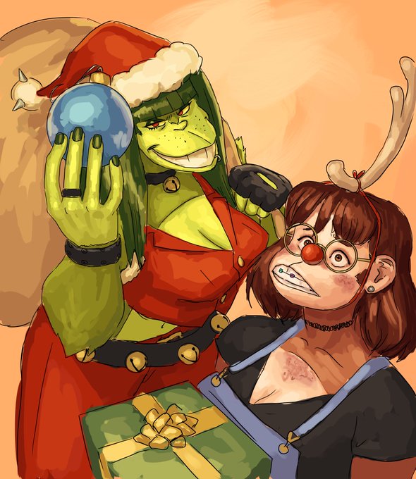 BETH OUT HERE, SCARIN THE WHOS. With her little Christmas Carol as Max #monkemonday with 3 minutes to spare #monkey #monke #anthro #christmas #grinch #art #digitalart #procreateart