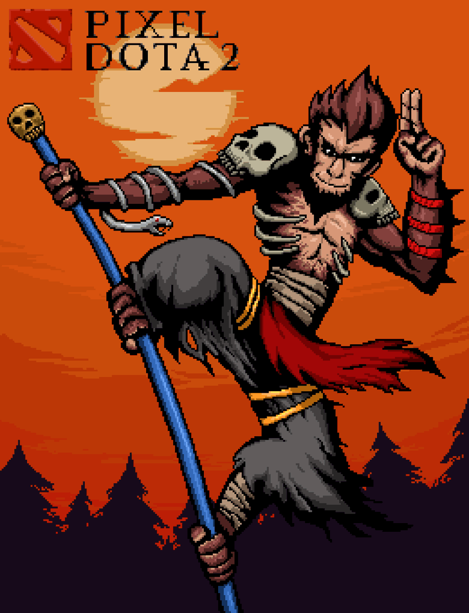 Dota 2 Fanart Wednesday! Monkey King got some Halloween outfit for himself. #dota2 #dota2heroes #dota2fanart #pixelart #monkeyking #sunwukong