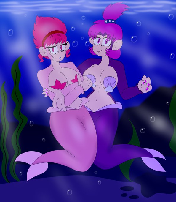 Mermaid MONKES to start the #Mermay off! OC: @PinkCupcakePup #Anthro #Furry #Furryartwork #Monkeymonday