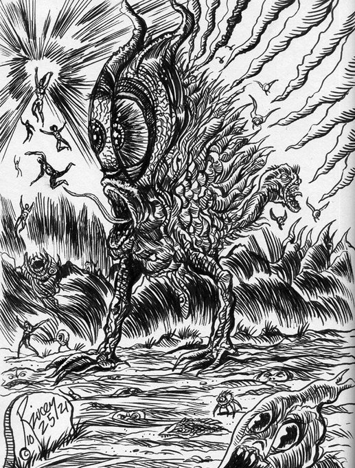 #Rinktober Day 23 in a #drawlloween way with a creature from some nightmare dimension to mess with you over there! #chills #drawrick #sketchbook #inkdrawing #create #horror #HorrorCommunity #HorrorArt #halloween2021 #horrorart #horrorfun #monsters #nightmare