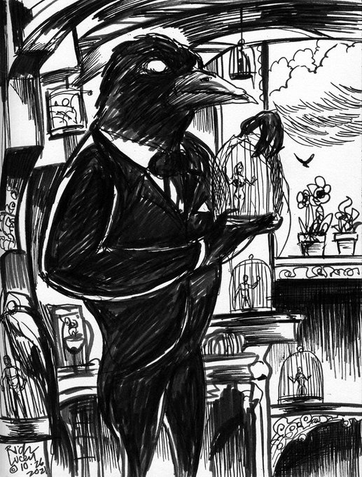 #Rinktober Day 26 in a #drawlloween and the bird is the word! #chills #drawrick #sketchbook #inkdrawing #create #horror #HorrorCommunity #HorrorArt #halloween2021 #horrorart #horrorfun #monsters #nightmarenature #crow