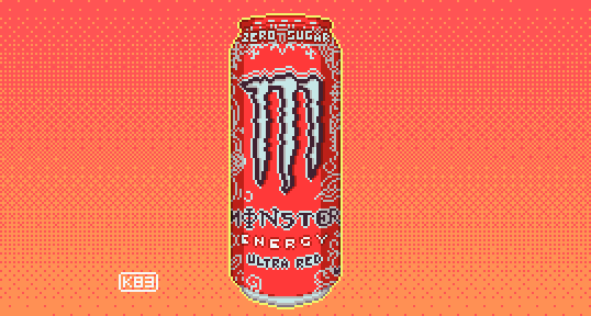Practicing the small details. I love the Monster ultra red, it has an incredible smell and taste 🍒💖.#pixelart #ドット絵 #MonsterEnergy