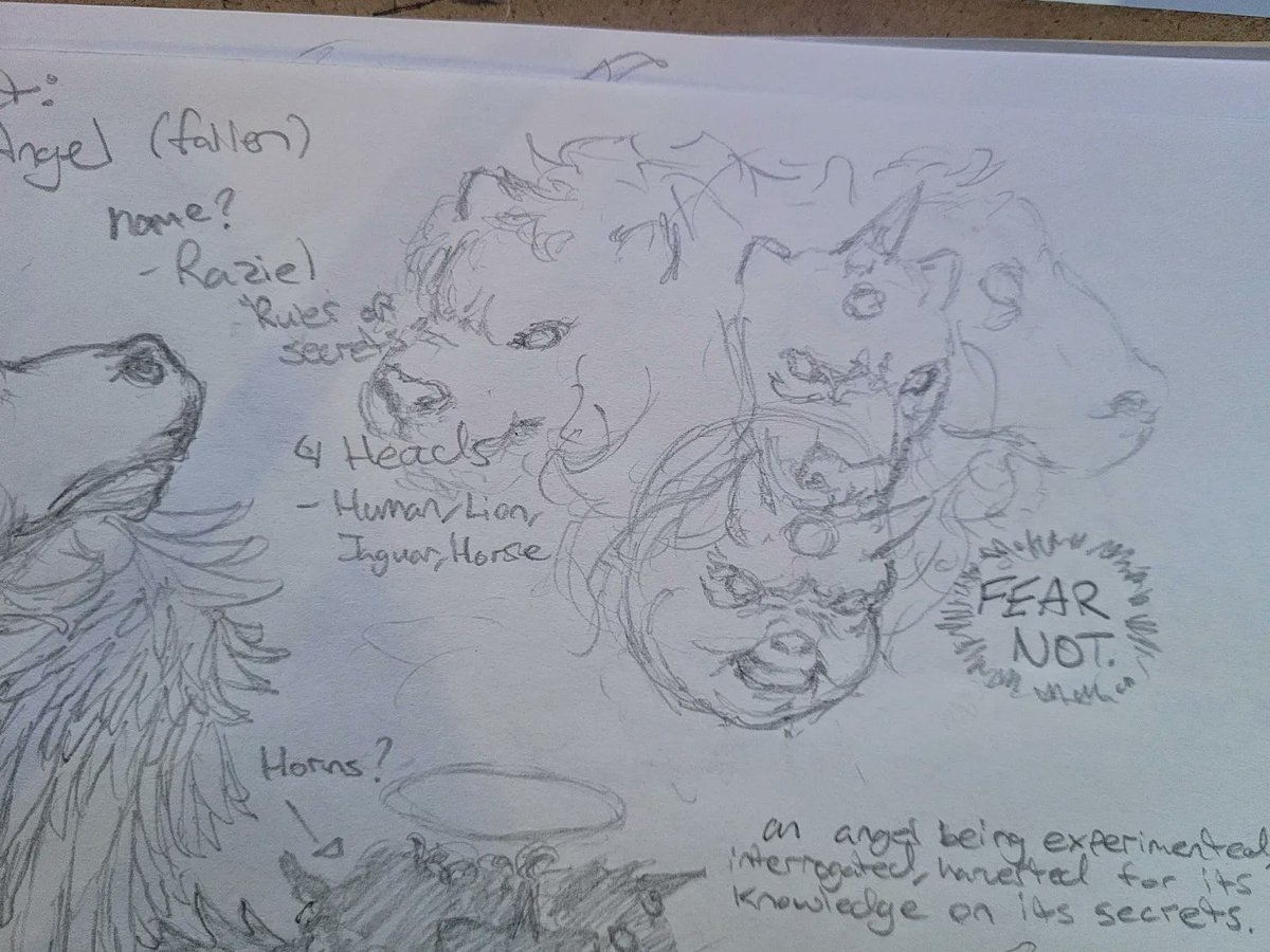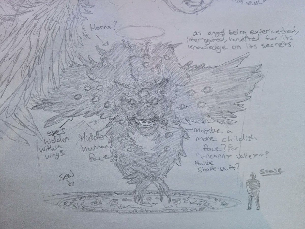 The fallen angel harvested for its and secrets... #sketchbook #indiecomic #Manga #anime #monsterofdoom #angel #illustration #monster #rkgk #rakugaki #sketch #conceptart #concept