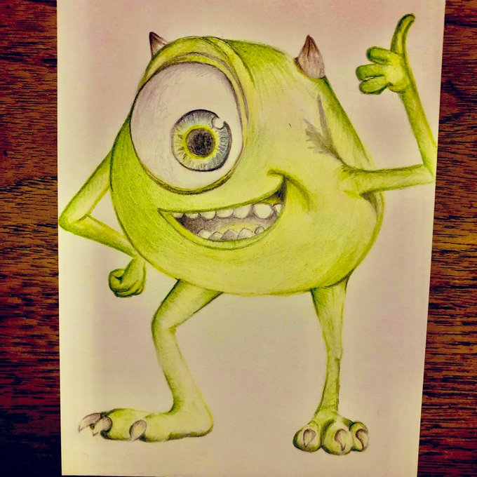 久しぶりに載せられるイラスト描いてみたぁ🍀 モンスターズインクを観たら、 なぜかマイクが描きたくて🤭 #MikeWazowski #モンスターズインク #MonstersInc #マイクワゾースキー #イラスト
